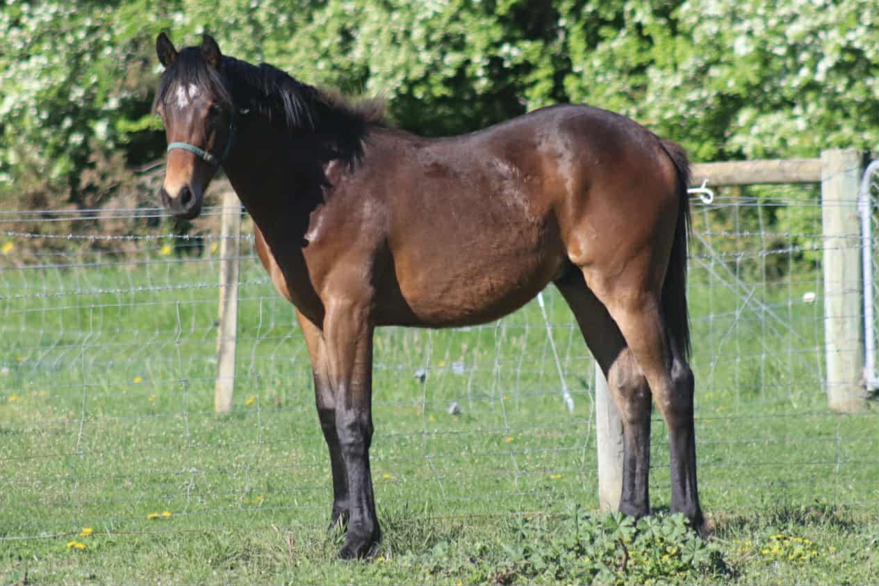 Dot Sire- Brigham (Clydie/TB) Dam- Magic (STB) Born- 8/11/23 2 yr old Filly Dark Bay Est height 16hh Dot feels like an old soul, she is quick to learn and wants to please, has a real can do attitude and is lovely to work with. Good to trim, drench, tie, lead and catch, I see her being an all-rounder.